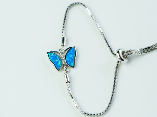 Sterling Silver Clear Cubic Zirconia and Blue Opal Butterfly Box Bracelet