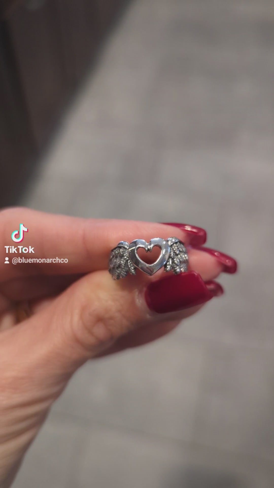 Unique beautiful sterling silver heart enveloped by angel wings. The angel wing is a symbol of angels. Angels symbolize protection, purity, courage, love, harmony and protection. Wearing an angel wing can be a reminder that your guardian is with you or is it a reminder that you are sent from heaven in this beautiful world. This is the perfect addition to your angel collection!