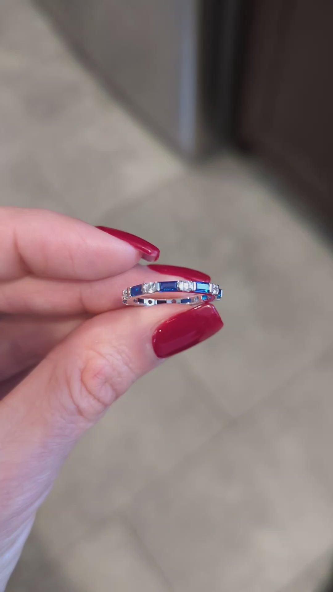 This simple yet stunning ring can be worn alone or stacked with other rings. The gorgeous sapphire blue color complements any look. This ring is perfect for everyday.