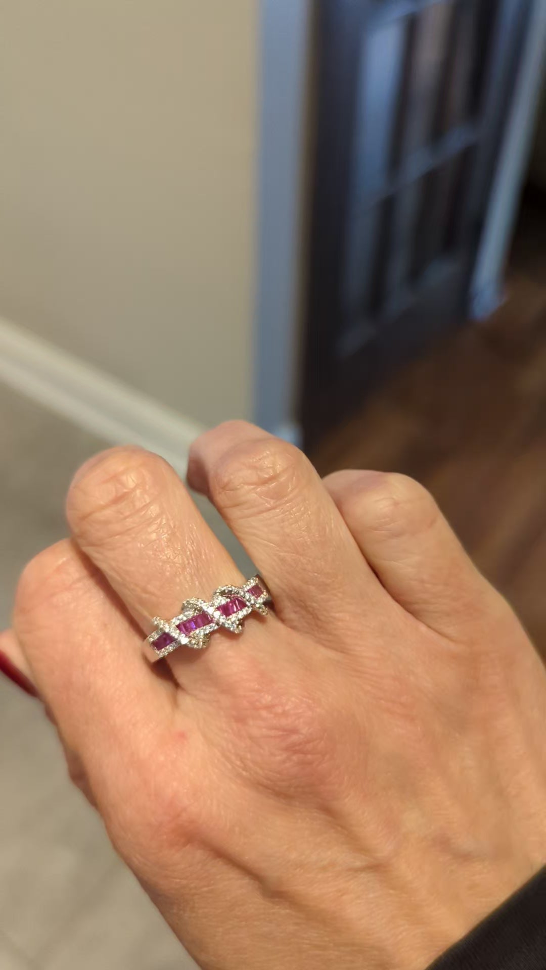 This unique exquisite twisted "pink line" cubic zirconia ring will make you shine above all the rest!!