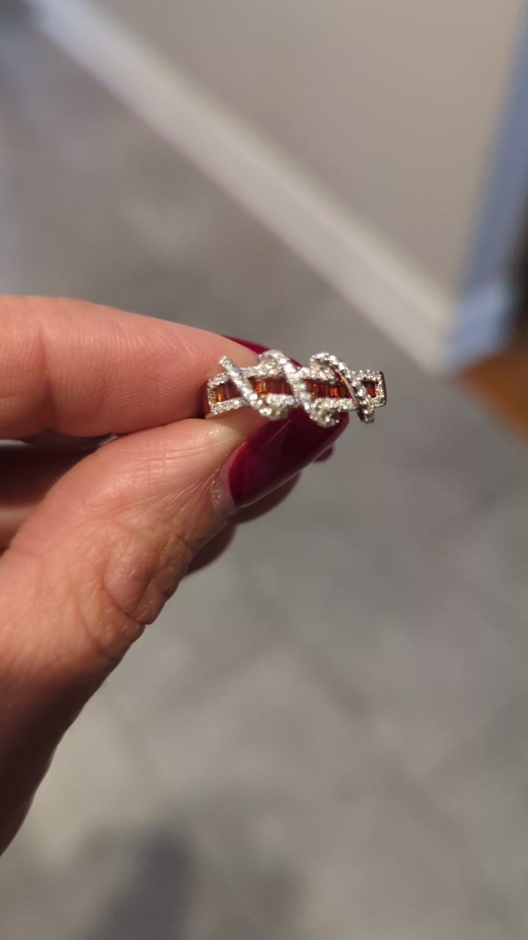 Garnet are one of the most versatile (and beautiful) stone that you will ever come across. Garnet stones come in multiple shades, like vibrant orange, mesmerizing green, and super-saturated purple. This particular Garnet colored ring has a reddish orange look. This color is bright and exciting and associated with physical energy. It is playful, energetic, and engaging. Red orange can also symbolize health and vitality. Get yours today!