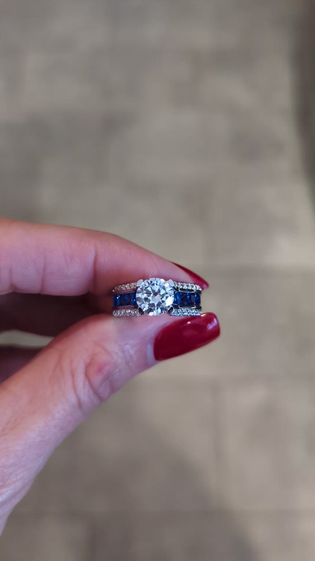 Sterling Silver Round & Princess Cut Clear & Blue Spinel CZ Ring